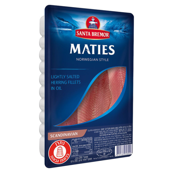 🐟 פילה דג הרינג מלוח ואיכותי מבית סנטה ברמור, בשמן עשיר בסגנון סקנדינבי קלאסי.